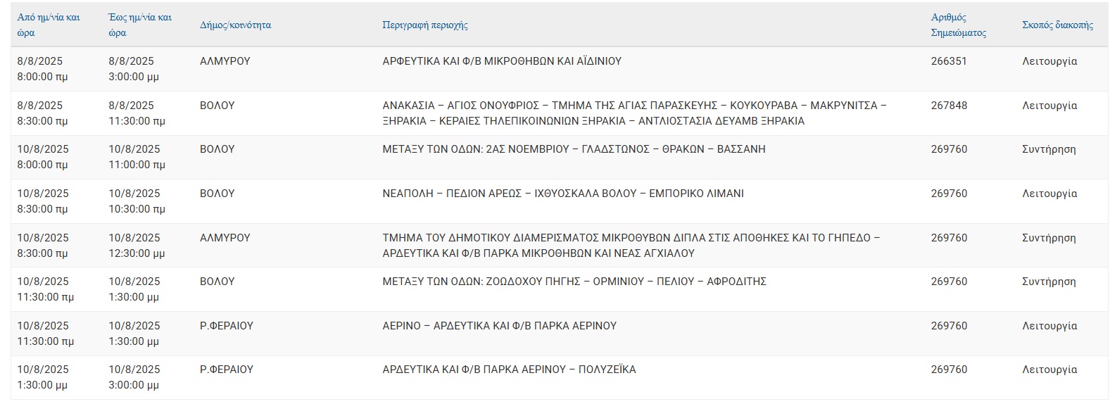 Αν οι εργασίες τελειώσουν νωρίτερα, το ρεύμα θα ξαναδοθεί πριν το χρόνο λήξης της διακοπής που αναφέρεται πιο πάνω.
