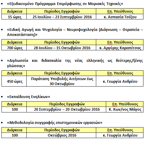 Το Κέντρο Διά Βίου Μάθησης (Κ.Δ.Β.Μ.) του Πανεπιστημίου Θεσσαλίας διοργανώνει προγράμματα εκπαίδευσης με τίτλους:
