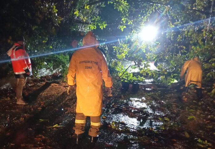 Πτώση μεγάλου δέντρου προέκυψε πριν λίγο στον δρόμο μεταξύ Μηλεών και Χορεύτρας.