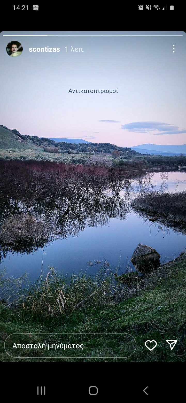 Χθες, ο φακός του αποτύπωσε τη λίμνη Κάρλα και φαίνεται πως ο σεφ βρίσκεται στην περιοχή. Να σημειωθεί πως η Κάρλα έχει δεχτεί τόνους νερού μετά τις πλημμύρες του Σεπτεμβρίου, διπλασιάζοντας ουσιαστικά το μέγεθός της. Ο σεφ συνόδευσε τη φωτογραφία με την παρακάτω λεζάντα : Αντικατοπτρισμοί. “Νικημένο μου ξεφτέρι δεν αλλάζουν οι καιροί. Με φωτιά κ με μαχαίρι πάντα ο κόσμος προχωρεί”