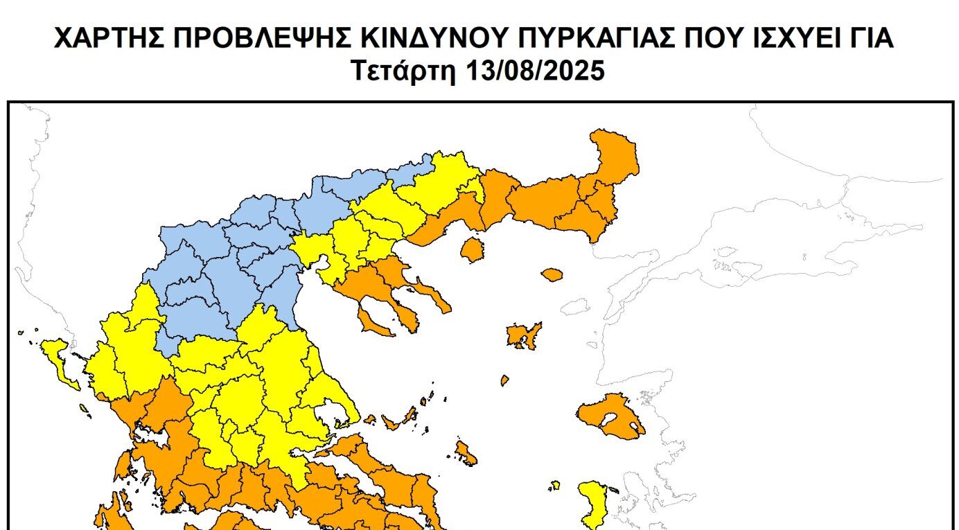 Η Π.Ε. Μαγνησίας και Σποράδων ενημερώνει ότι σύμφωνα με τον Ημερήσιο Χάρτη Πρόβλεψης Κινδύνου Πυρκαγιάς της Γενικής Γραμματείας Πολιτικής Προστασίας, για σήμερα Τετάρτη 13 Αυγούστου, προβλέπεται Κατηγορία Κινδύνου 4 (πολύ υψηλή) για τα νησιά των Β. Σποράδων και Κατηγορία Κινδύνου 3 (υψηλή) για την ηπειρωτική Μαγνησία, ενώ ο Γενικός Γραμματέας Πολιτικής Προστασίας έχει θέσει τα νησιά των Βορείων Σποράδων σε κατάσταση κινητοποίησης (Red Code).
