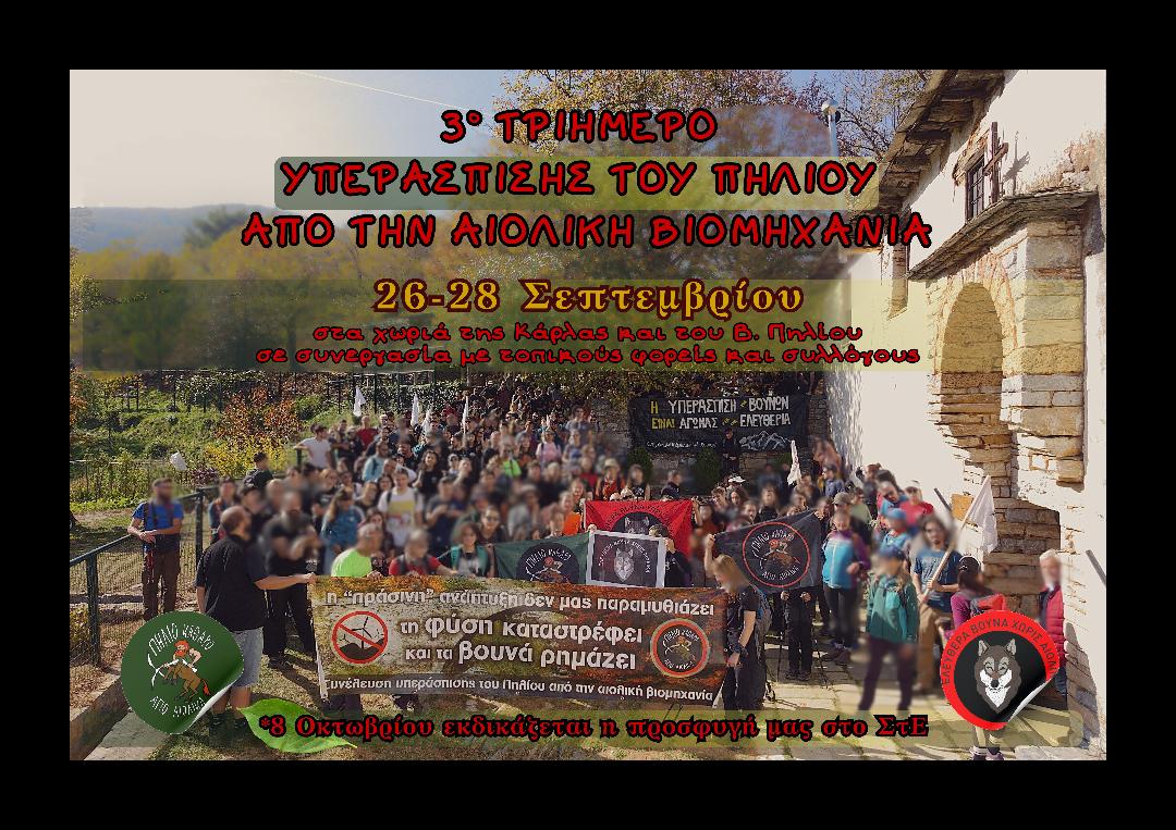 Ανακοινώθηκε από την ομάδα «Συνέλευση Υπεράσπισης του Πηλίου από την αιολική βιομηχανία» το πρόγραμμα για το «3ο Τριήμερο Υπεράσπισης του Πηλίου» που έχει ορισθεί να πραγματοποιηθεί από 26 έως 28 Σεπτεμβρίου 2025 στα δύο χωριά της περιοχής μας, τα Κανάλια και την Κερασιά.