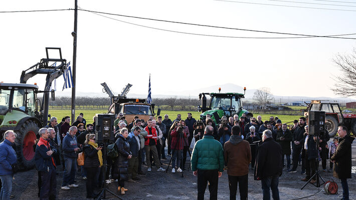 Μεταξύ των αγροτών που τον υποδέχτηκαν ήταν ο πρόεδρος του Αγροτικού Συλλόγου Ριζόμυλου Χάρης Σεσκλιώτης, ο πρόεδρος της Ομοσπονδίας Αγροτικών Συλλόγων Μαγνησίας, Θοδωρής Γεωργαδάκης, καθώς και εκπρόσωποι των Αγροτικών Συλλόγων Μακρινίτσας και Ζαγοράς.
