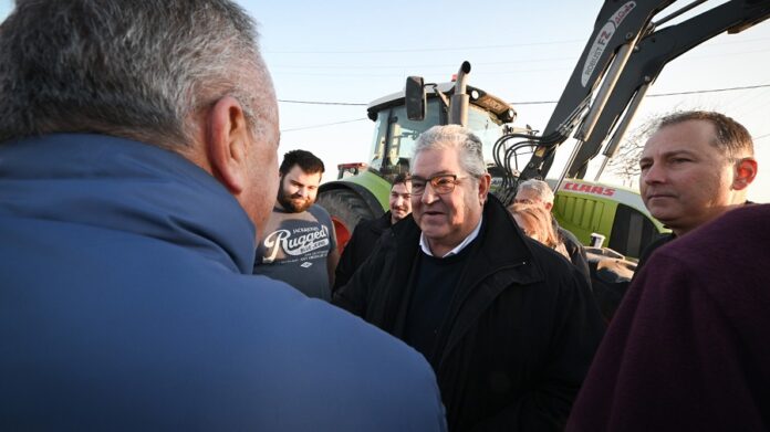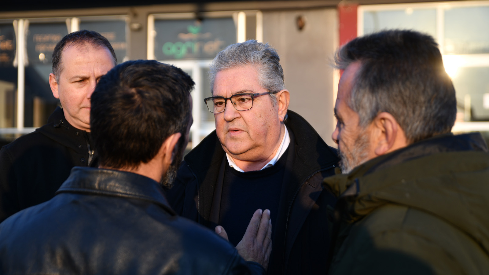 Θερμή υποδοχή στον Γενικό Γραμματέα της ΚΕ του ΚΚΕ, Δημήτρη Κουτσούμπα, επιφύλαξαν οι αγρότες στο μπλόκο του Ριζόμυλου, προχωρώντας και σε συμβολικό αποκλεισμό της παλαιάς εθνικής οδού Βόλου – Λάρισας καθ’ όλη τη διάρκεια της παραμονής του.