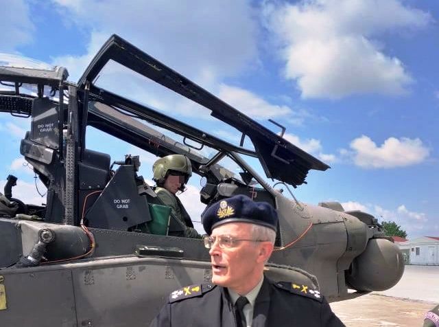 Ο αντιστράτηγος εντυπωσιάστηκε από τα υπόστεγα συντήρησης των ελικοπτέρων και τις εγκαταστάσεις του στρατοπέδου και με την ευκαιρία του ανεφοδιασμού, πραγματοποίησε άτυπη επίσκεψη στο χώρο της Ταξιαρχίας.