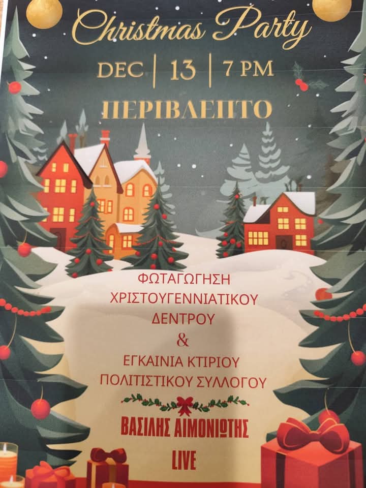 Την Παρασκευή 13 Δεκεμβρίου στις 7 το απόγευμα θα πραγματοποιηθεί η φωταγώγηση του χριστουγεννιάτικου δέντρο στο Περίβλεπτο και ταυτόχρονα και τα εγκαίνια του κτηρίου του Πολιτιστικού Συλλόγου.