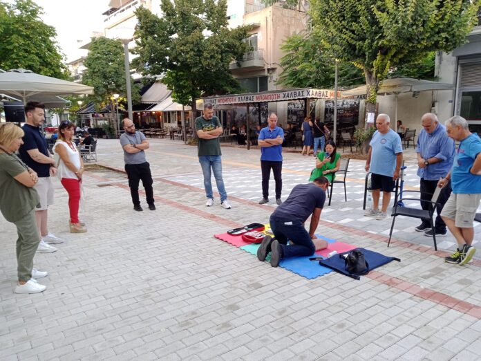 Στον πεζόδρομο του Βελεστίνου η Λέσχη Ειδικών Δυνάμεων Μαγνησίας, πραγματοποίησαν στους κατοίκους μάθημα Βασικής Υποστήριξης της Ζωής ΚΑΡΠΑ και χρήση εξωτερικού απινιδωτή με την ευκαιρία της εγκατάστασης στη πόλη δύο Εξωτερικών Απινιδωτών.