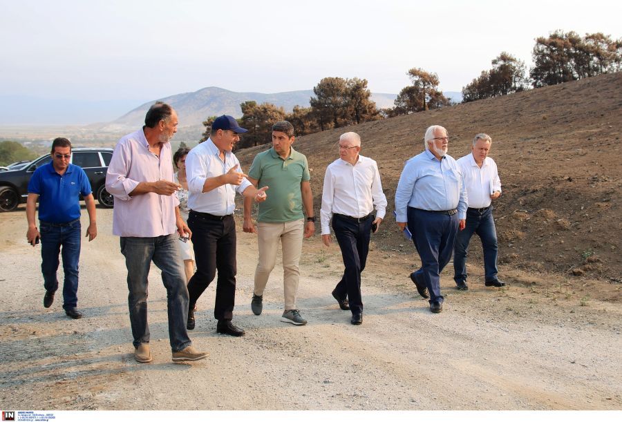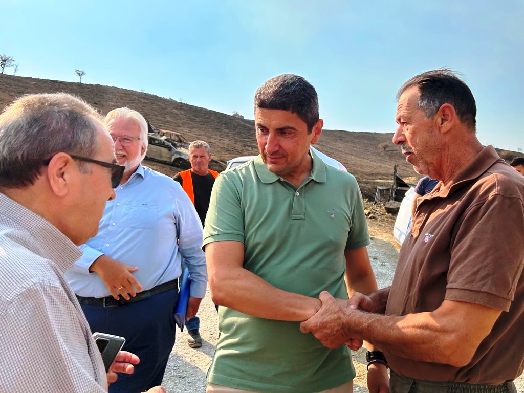 Ο Λευτέρης Αυγενάκης συζήτησε με παραγωγούς των οποίων οι εγκαταστάσεις υπέστησαν ζημιές ή απώλεσαν στη φωτιά ζωικό ή φυτικό κεφάλαιο.