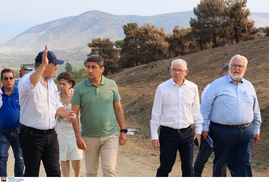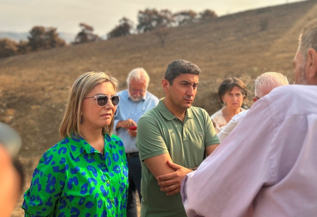 Το πρωί ο υπουργός, Λευτέρης Αυγενάκης και ο υφυπουργός, Διονύσης Σταμενίτης, συνοδευόμενοι από τους ΓΓ, Γιώργο Στρατάκο, Κ. Μπαγινέτα και Δημ. Παπαγιαννίδη και τον Πρόεδρο του ΕΛΓΑ, Ανδρέα Λυκουρέντζο, επισκέφθηκαν τον Άγιο Γεώργιο προκειμένου να δουν από κοντά τις καταστροφές από τις πυρκαγιές του Ιουλίου.