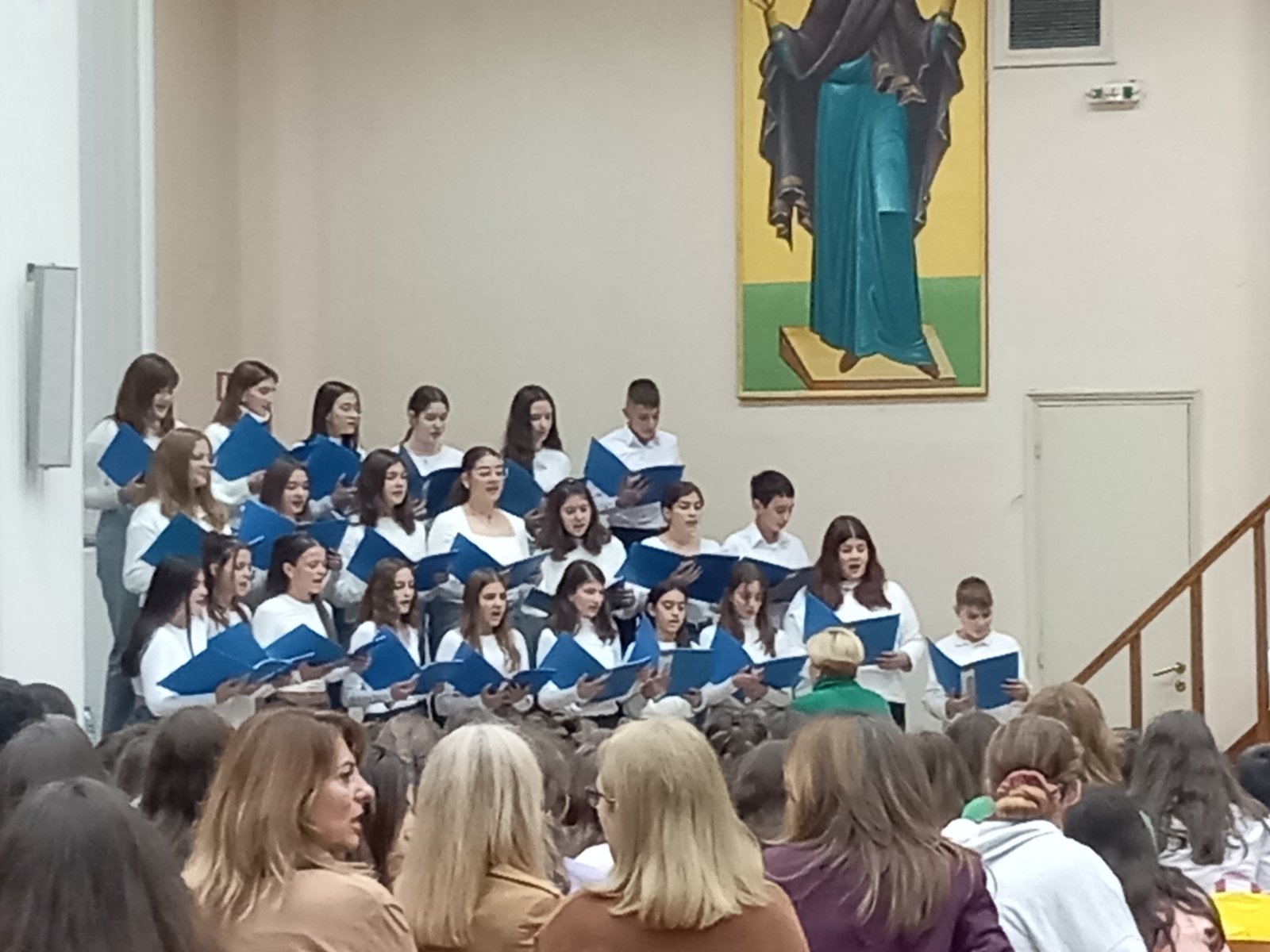 Οι μαθητές κατάφεραν να συγκινήσουν τους ακροατές, εισπράττοντας ένα πολύ ζεστό χειροκρότημα. Ιδιαίτερη αίσθηση προκάλεσε η αυθόρμητη κίνηση μαθητή του ΕΕΚ ο οποίος πλησίασε και τραγούδησε μαζί με τη χορωδία.