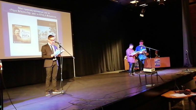 Οι νέοι ερευνητές του ΕΠΑ.Λ., ορμώμενοι από την φράση του Ρήγα Βελεστινλή ‘‘ότι θα πρέπει να τιμούμε τη γενέτειρά μας’’, ανατρέχοντας στη σημαντική συγγραφική δημιουργία του Ρήγα Βελεστινλή, άντλησαν πληροφορίες για την εργασία τους, η οποία είχε διπλό στόχο: αφενός να εντοπίσουν τα σημεία όπου ο Ρήγας Βελεστινλής τίμησε την γενέτειρά του και αφετέρου να αναδειχθεί, πως τίμησαν και τιμούν την βαριά κληρονομιά που κουβαλούν, οι Βελεστινιώτες, ως απόγονοι του Ρήγα. Στην εργασία συμμετείχαν οι μαθητές, ΚΑΡΑΒΑΣΙΛΗΣ ΚΩΝΣΤΑΝΤΙΝΟΣ, ΚΑΛΑΜΙΔΑΣ ΙΩΑΝΝΗΣ, ΚΟΥΤΙΚΛΙΑΣ ΑΠΟΣΤΟΛΟΣ, ΜΟΥΣΑΙ ΕΡΑΛΝΤΟ, ΣΑΪΤΗΣ ΓΙΩΡΓΟΣ, ΣΥΡΤΑΔΙΩΤΗΣ ΡΙΖΟΣ, ΤΣΙΝΤΖΟΣ ΚΩΝΣΤΑΝΤΙΝΟΣ και ΧΑΛΒΑΤΖΗΣ ΠΟΛΥΧΡΟΝΗΣ, με συνοδούς τις κες Αδρακτά Αγγελική και Κυριακοπούλου Μαρία. Την τελετή λήξης του συνεδρίου πλαισίωσαν οι μαθητές του ΕΠΑ.Λ. ΣΥΡΤΑΔΙΩΤΗΣ ΡΙΖΟΣ και ΜΟΥΣΑΙ ΕΡΑΛΝΤΟ όπου με τους ήχους του κλαρίνου έδωσαν ένα ιδιαίτερο χρώμα στην εκδήλωση, καθώς έπαιξαν τον Θούριο και τον Εθνικό Ύμνο.