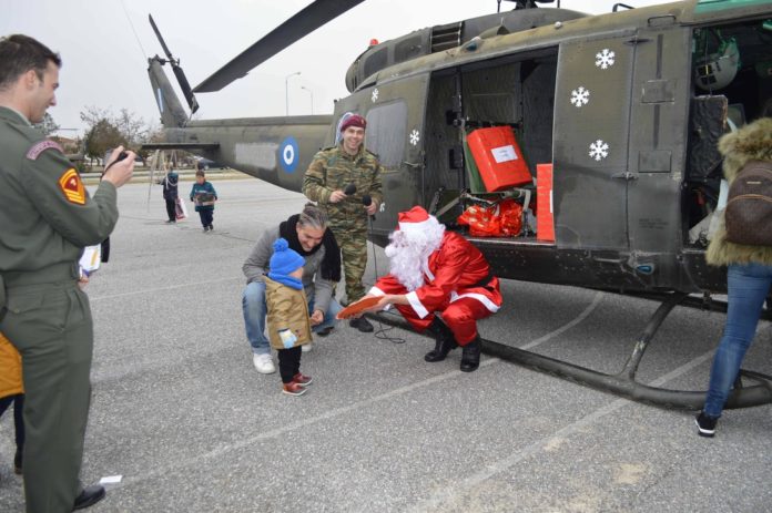– Μεταφορά με ελικόπτερο τύπου HUEY και διανομή δώρων από τον Άγιο Βασίλη στα τέκνα του πολιτικού και στρατιωτικού προσωπικού, το οποίο υπηρετεί στο Αεροδρόμιο Στεφανοβικείου.