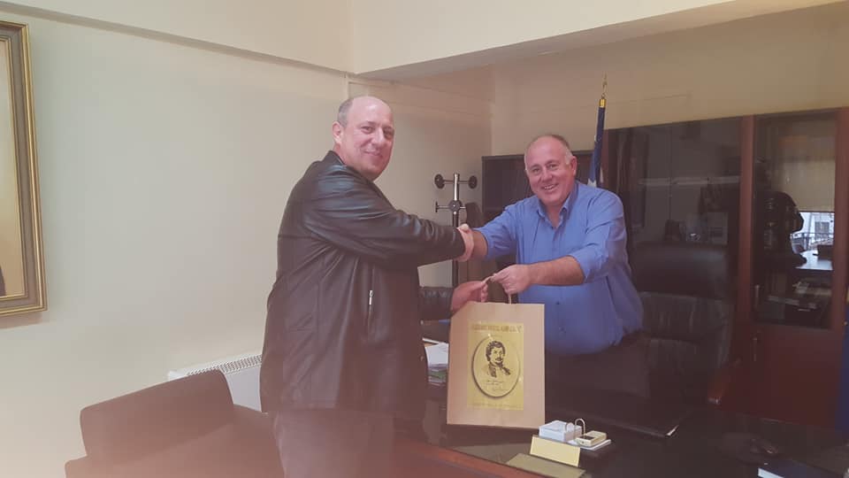 Ο δήμαρχος προσέφερε στον κ. Χριστάκη αναμνηστικά δώρα από τη ζωή και το έργο του Ρήγα και μια συλλογή γραμματοσήμων με θέμα τον Ρήγα Βελεστινλή».
