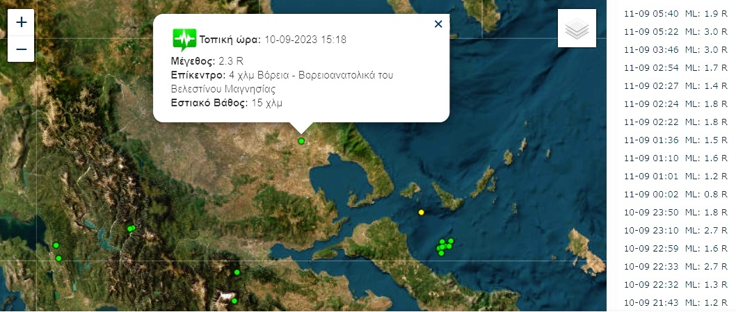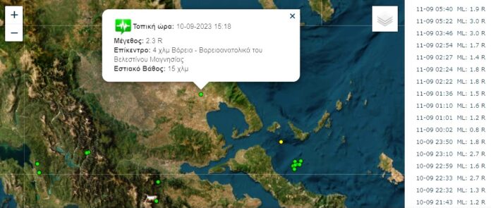 Σεισμική δόνηση μεγέθους 2,3 βαθμών της κλίμακας Ρίχτερ σημειώθηκε χθες Κυριακή στις 15.18, με επίκεντρο 4 χλμ. Βόρεια Βορειοανατολικά του Βελεστίνου.