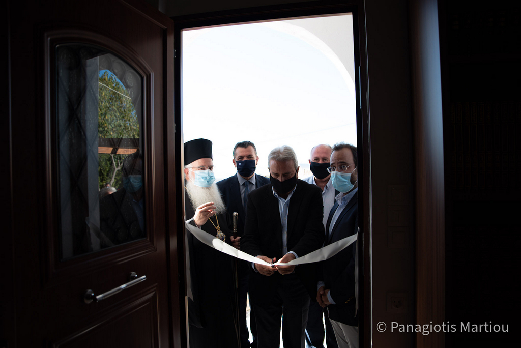 Χαιρετισμό απηύθυνε ο κ. Ιωάννης Μόσχος, Δ/ντής του Ιδρύματος, ο οποίος, μεταξύ άλλων ανέφερε ότι «η σημερινή τελετή μας καλεί πρωτίστως να τιμήσουμε εκείνον που ανήκει σε αυτό που ονομάζουμε ένδοξο παρελθόν, τον Μακαριστό Αθανάσιο Γκαβαρδίνα, τον κτήτορα και ιδρυτή του Γηροκομείου μας. Μαχητής και ασυμβίβαστος. Ασκητικός και απέριττος. Τολμηρός και θαρραλέος. Δυναμικός και ακούραστος. Συλλαμβάνει το όραμα. Αγωνιά για το σχεδιασμό. Κοπιάζει για τη δημιουργία του. Μοχθεί για τη λειτουργία του. Δεν λογαριάζει χρήματα, νόμους, κανόνες. Μοναδικός του στόχος να κατασκευαστεί ένας χώρος να στεγάσει γέροντες και γερόντισσες, πρόσωπα που ο χρόνος έχει γύρει βαρύς πάνω τους και η ανάγκη τους κρατά μακριά από το σπιτικό τους…». Στην συνέχεια ο κ. Μόσχος επεσήμανε ότι «οι σύγχρονες ανάγκες επιβάλλουν χώρους κατάλληλους για τους τροφίμους του Ιδρύματός μας. Το πρώτο μας τόλμημα, η εκ βάθρων ανακαίνιση του προαύλιου χώρου. Καλαίσθητος και ασφαλής, σύγχρονος και άρτια εξοπλισμένος. Έτοιμος πια να προσφέρει τον αυλισμό των τροφίμων. Το δεύτερο τόλμημά μας, η νέα βιβλιοθήκη του Ιδρύματός μας. Φιλοξενεί τα βιβλία του λογίου Αθανασίου Γκαβαρδίνα καθώς και πολλά από τα προσωπικά του αντικείμενα…». Αναφερόμενος στους μελλοντικούς στόχους, ο κ. Μόσχος τόνισε ότι «η νομιμοποίηση του υφισταμένου κτηρίου και η έκδοση της άδειας λειτουργίας, ο πρωταρχικός μας στόχος. Η εσωτερική και εξωτερική ανακαίνιση του Ιδρύματος το επόμενο μέλημά μας. Θα συνεχίσουμε το άνοιγμα του γηροκομείου μας στην κοινωνία και όλους τους φορείς της. Θα συνεχίσουμε να προσφέρουμε την αγάπη και τη στοργή στους ηλικιωμένους με επιστημονική γνώση και αξιέπαινη τεχνογνωσία. Θα αγωνιζόμαστε συνεχώς η φροντίδα μας να συναντά την ασφάλεια και η οικογενειακή ατμόσφαιρα να ανακουφίζει και να αντικαθιστά συγγενείς και φίλους…». Τέλος, ο Δ/ντής του Ιδρύματος ευχαρίστησε τα Μέλη του Συλλόγου των Φίλων του Γηροκομείου για την πολυσήμαντη προσφορά τους στην λειτουργία του, τον Μεγάλο Ευεργέτη κ. Χαράλαμπο Τσιμά, για τις σπουδαίες χορηγίες του και πρωτίστως τον Σεβ. Ποιμενάρχη μας κ. Ιγνάτιο, για την αγάπη και την εμπιστοσύνη με τις οποίες περιβάλλει τον ίδιο και τους συνεργάτες του.