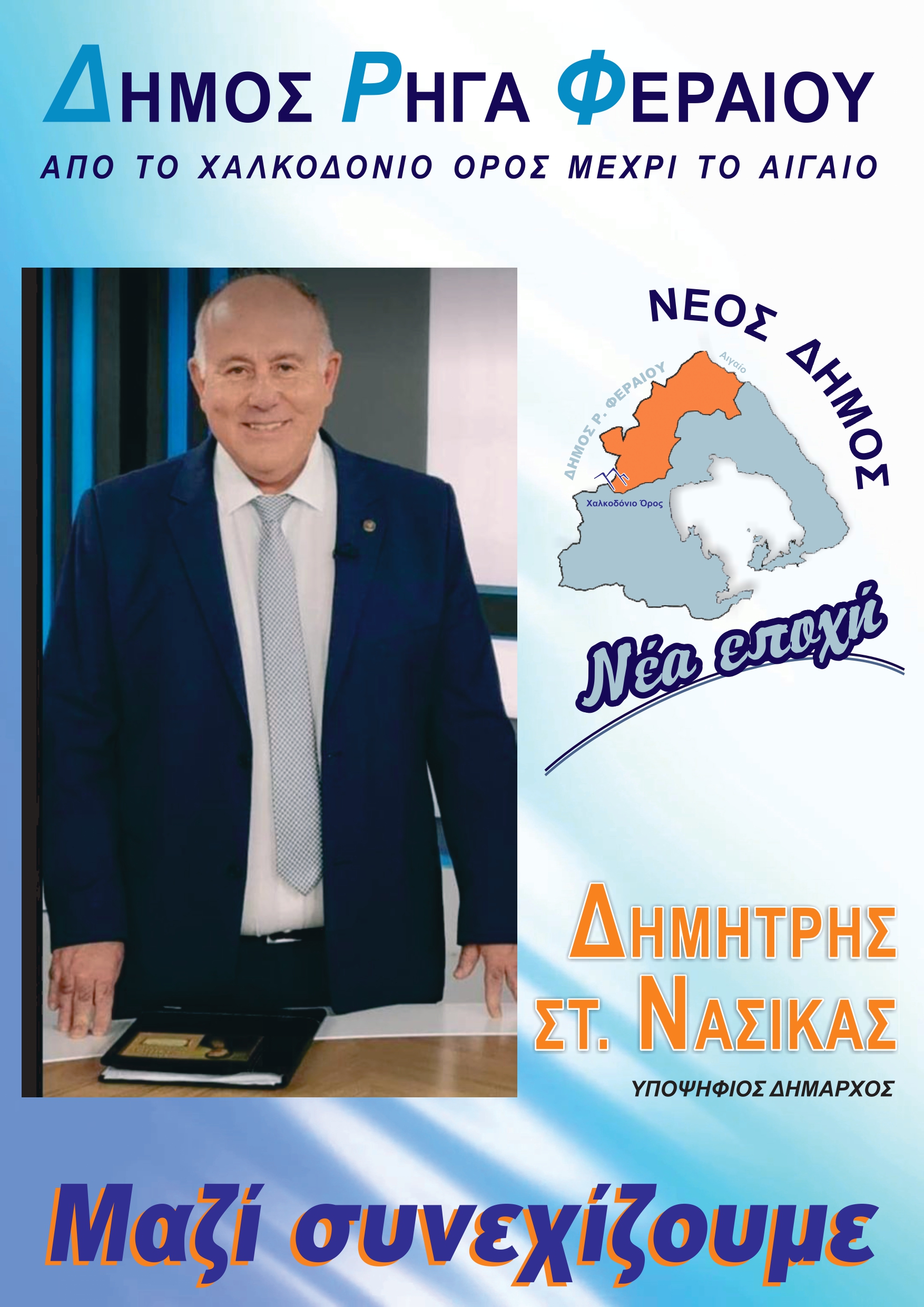 Τους υποψηφίους δημοτικούς και τοπικούς συμβούλους με τον συνδυασμό «Νέος Δήμος- Νέα Εποχή» ανακοίνωσε ο Δήμαρχος Ρήγα Φεραίου και εκ νέου υποψήφιος κ. Δημήτρης Νασίκας.