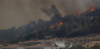 Η στιγμή που οι φλόγες “αγγίζουν” τις εργατικές κατοικίες στο Βελεστίνο