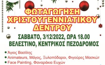 Φωταγωγείται το Σάββατο το Χριστουγεννιάτικο δέντρο στο Βελεστίνο