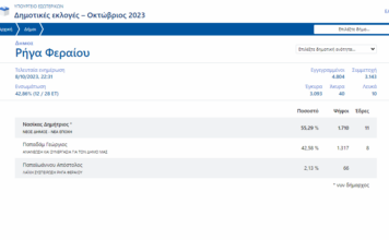 Σταθερό προβάδισμα για τον Δ. Νασίκα στον δήμο Ρήγα Φεραίου