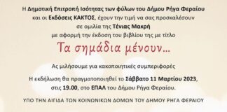 Εκδήλωση στον Δήμο Ρήγα Φεραίου με την Τένια Μακρή