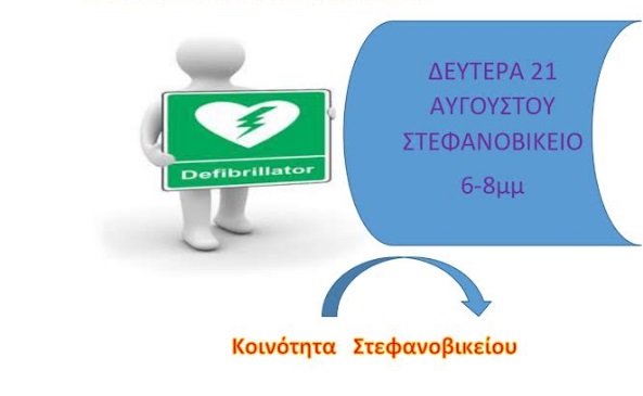 Με αφορμή την τοποθέτηση εξωτερικών απινιδωτών στον Δήμο Ρήγα Φεραίου, το ΚΕΠ Υγείας διοργανώνει εκπαίδευση καρδιοπνευμονικής αναζωογόνησης και χρήσης εξωτερικού απινιδωτή, με τον πολιτιστικό Σύλλογο Στεφανοβικείου και την Ελληνική ομάδα διάσωσης, την Δευτέρα 21 Αυγούστου 2023 και ώρες 6 – 8μμ στην Κοινότητα Στεφανοβικείου.