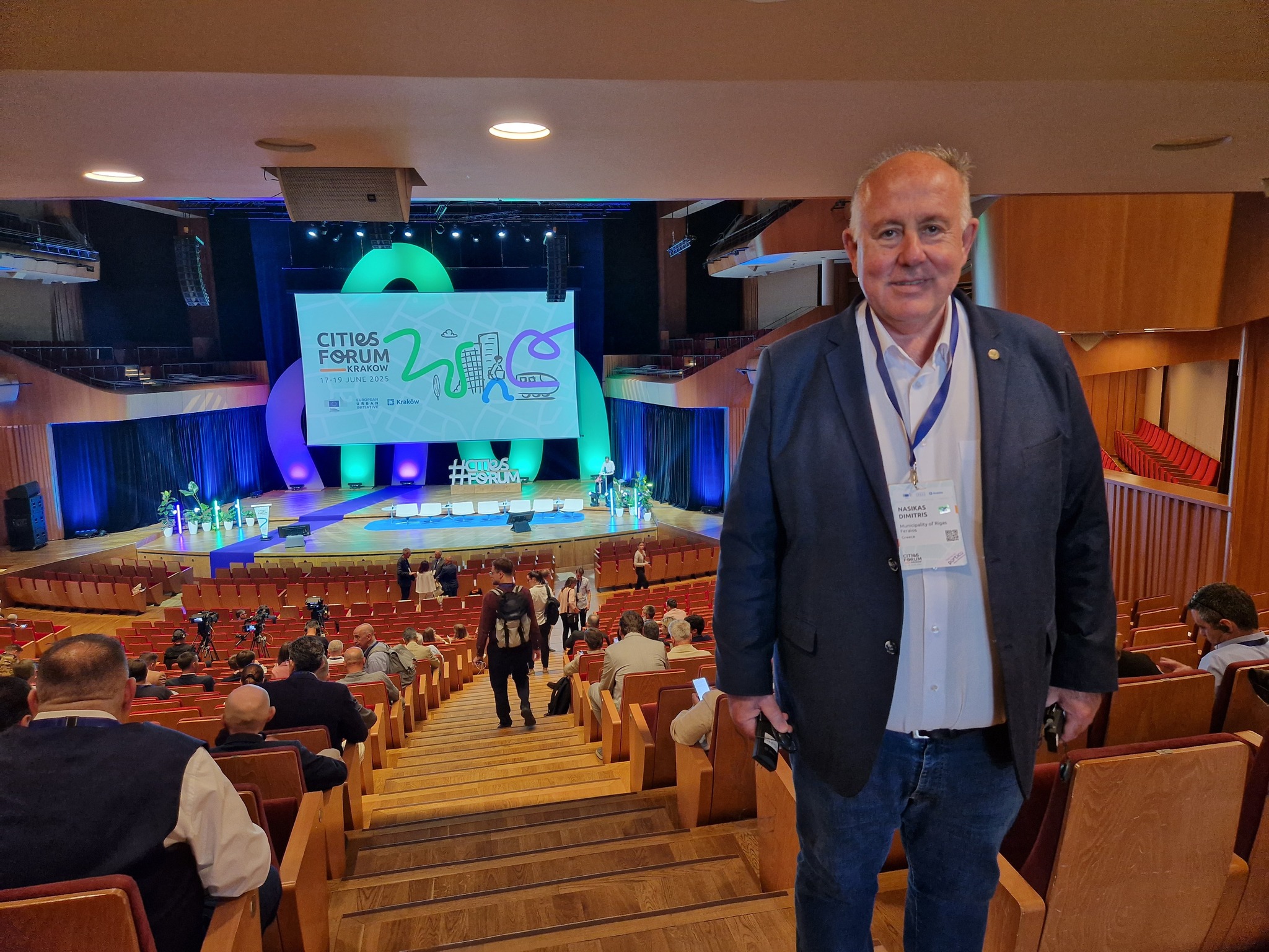 Στις εργασίες του Cities Forum 2025 της Ε.Ε που διεξάγεται στην Κρακοβία της Πολωνίας συμμετέχει ο δήμαρχος Ρήγα Φεραίου, Δημήτρης Νασίκας, στο πλαίσιο της προσπάθειας για την αναβάθμιση υποδομών, τον εκσυγχρονισμό των υπηρεσιών και της δημιουργίας νέων έργων στην υπηρεσία του δημότη και των επισκεπτών του δήμου.