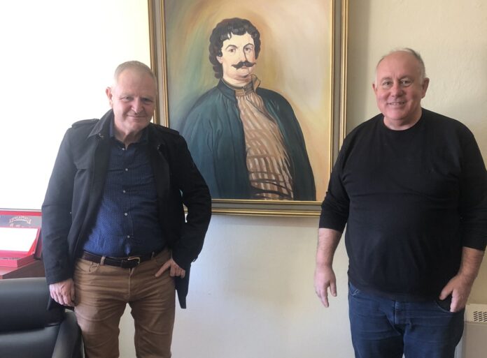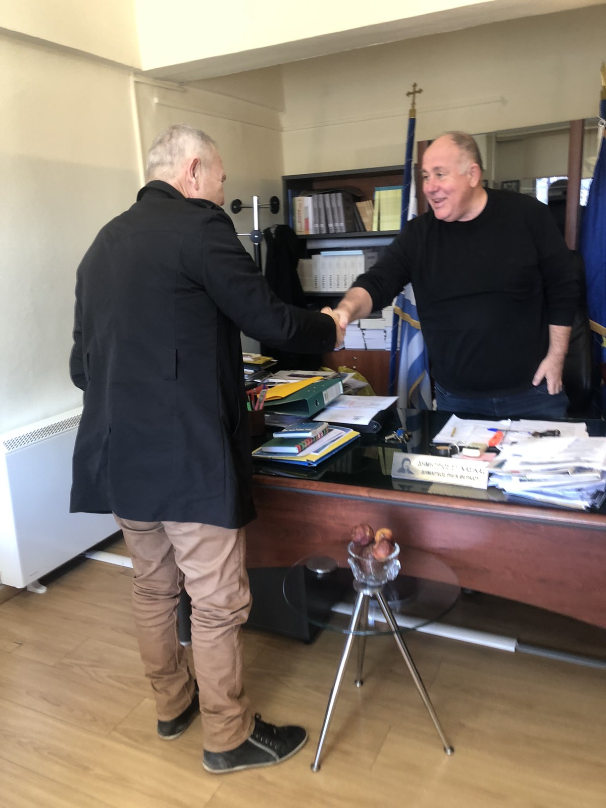 Συναντήθηκε με τον δήμαρχο όπου και συζητήθηκαν ζητήματα που απασχολούν την τοπική κοινωνία, με έμφαση στον τομέα της υγείας. Τέθηκε στη συζήτηση το θέμα της αναβάθμισης των υπηρεσιών υγείας για τους πολίτες της περιοχής, η δυσκολία πρόσβασης από την εθνική οδό, το ενδεχόμενο δημιουργίας ενός τοπικού συνεταιρισμού, αγροτικά και κτηνοτροφικά ζητήματα και οι δυνατότητες δημιουργίας νέων θέσεων εργασίας. Επίσης τέθηκε στο τραπέζι το ζήτημα του μουσείου του Ρήγα Βελεστινλή, του κλειστού γυμναστηρίου και η ανάγκη ανάδειξης όπως και οι προοπτικές ανάπτυξης της λίμνης Κάρλας. Τονίστηκε εν τέλει η αναγκαιότητα στήριξης του κέντρου υγείας που εξυπηρετεί την ευρύτερη περιοχή και αποτελεί βασικό πυλώνα του τόπου».