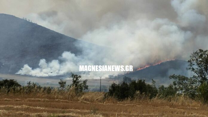 Εκεί υπάρχουν χορτολιβαδικές εκτάσεις και χαμηλή και μεσαία βλάστηση, αλλά και ποιμνιοστάσια και καλλιέργειες. Canadair προχωρούν στη ρίψη νερού, ενώ υπάρχουν και επίγειες δυνάμεις της Πυροσβεστικής για να παρέμβουν όπου χρειάζεται.
