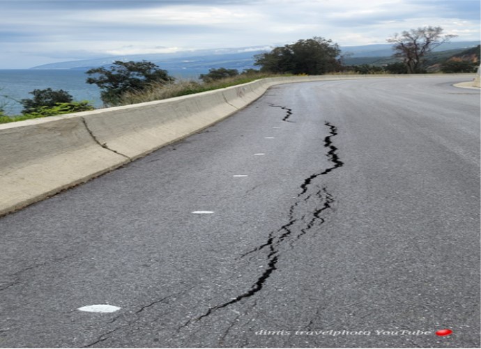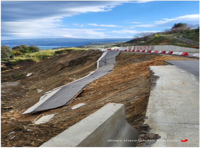 Τα προβλήματα αυτά, έδειχναν ότι δεν έγιναν όλα τα αναγκαία τεχνικά έργα αντιστήριξης με τσιμεντένιους τοίχους, κλπ., ώστε να αποφευχθούν οι επικίνδυνες καταπτώσεις στο οδόστρωμα. Αρχές Απριλίου 2025, λίγο μετά τον Ρακοπόταμο και λίγο πριν τα «Λατομεία», ο δρόμος έπεσε τελείως στο γκρεμό όπως φαίνεται και στη φωτογραφία, ενώ σε άλλα σημεία άρχισε να σκίζεται η άσφαλτος, γεγονός που επιβεβαιώνει την προηγούμενη καταγγελία μας ότι δεν έγιναν όλα τα αναγκαία τεχνικά έργα, ώστε να είναι ασφαλής ο δρόμος» αναφέρεται χαρακτηριστικά από τη ΛΑΣΥ.