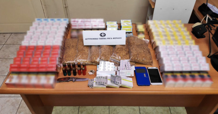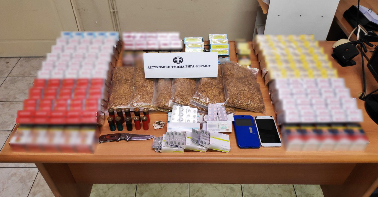 Στη «φάκα» πιάστηκαν τρεις Έλληνες, μία εξ αυτών γυναίκα, από αστυνομικούς του Α.Τ. Ρήγα Φεραίου, για παράβαση Εθνικού Τελειωνειακού Κώδικα για τα αδικήματα της κατοχής ναρκωτικών, αλλά και της παράβασης του νόμου περί όπλων. Οι συλληφθέντες είχαν στην κατοχή τους πάνω από 250 λαθραία πακέτα τσιγάρα και πάνω από 150 χάπια, χωρίς ιατρική συνταγή.