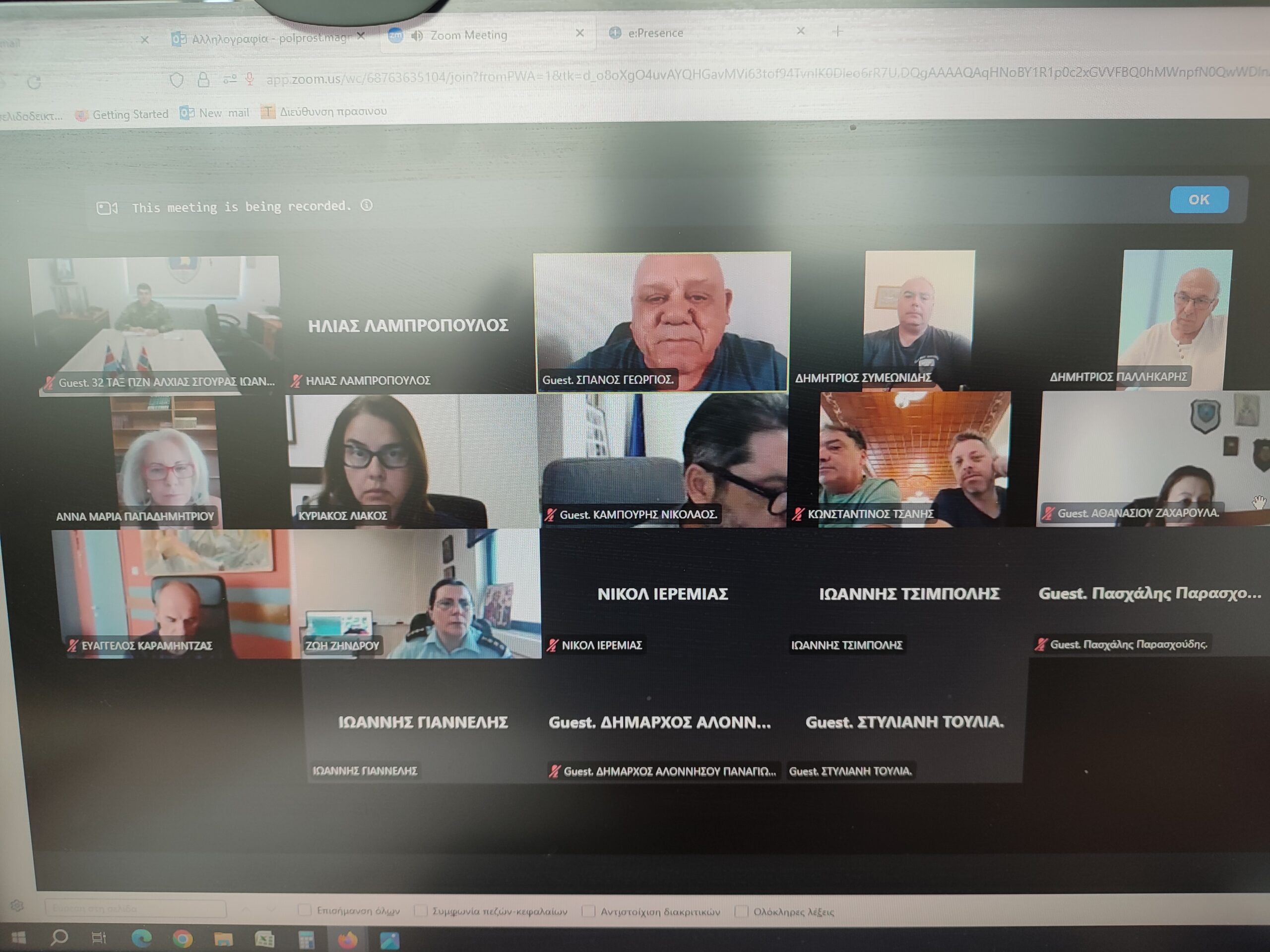 Μέσω τηλεδιάσκεψης συνεδρίασε σήμερα Πέμπτη, εκτάκτως το Περιφερειακό Επιχειρησιακό Συντονιστικό Όργανο Πολιτικής Προστασίας της Περιφερειακής Ενότητας Μαγνησίας και Σποράδων, υπό την προεδρία της Αντιπεριφερειάρχη κ. Άννας Μαρίας Παπαδημητρίου και παρουσία εκπροσώπων των εμπλεκόμενων φορέων.