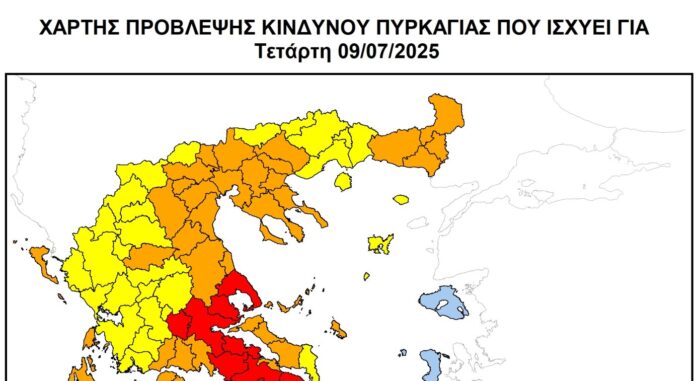 Ταυτόχρονα, ο Χάρτης Πρόβλεψης Κινδύνου Πυρκαγιάς της Γ.Γ.Π.Π. τοποθετεί τη Μαγνησία στην κατηγορία 5 (κατάσταση συναγερμού) και στην κατηγορία 4 (πολύ υψηλή) τα νησιά των Β. Σποράδων.