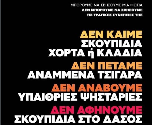 - Μην καίτε σκουπίδια ή ξερά χόρτα και κλαδιά κατά τους θερινούς μήνες.
