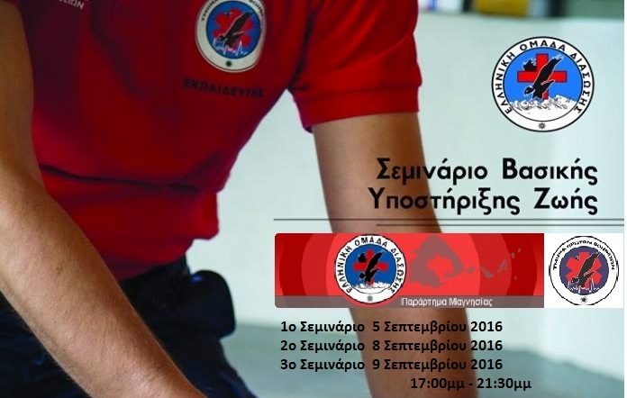 Tο τμήμα Πρώτων Βοηθειών της «Ελληνικής Ομάδας Διάσωσης Μαγνησίας» διοργανώνει ακόμη τρία σεμινάρια, ανοιχτά για πολίτες, με θέμα “ Βασική Υποστήριξη Ζωής, Καρδιοπνευμονική αναζωογόνηση (ΚΑΡΠΑ), χρήση Αυτόματου Εξωτερικού Απινιδωτή, αντιμετώπιση πνιγμονής & Θέση ανάνηψης”. Τα σεμινάρια θα διεξαχθούν στις 5, 8 & 9 Σεπτεμβρίου 2016 και ώρες 17:00μμ – 21:30μμ στην αίθουσα εκπαίδευσης της Ε.Ο.Δ Μαγνησίας (Σπετσών 10, Νεάπολη Βόλου).