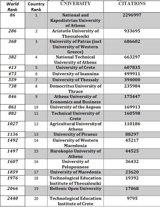 Σημαντική βελτίωση της θέσης του Πανεπιστημίου Θεσσαλίας στην διεθνή κατάταξη Πανεπιστημίων ‘Top Universities by Citations in Top Google Scholar profiles‘, που δημοσιεύει η Webometrics σημειώνεται και φέτος. Όπως έγινε γνωστό, το Πανεπιστήμιο βρίσκεται το 2020 στην 554η θέση με 394000 ετεροαναφορές (citations) του ερευνητικού έργου των καθηγητών του ιδρύματος, ανάμεσα στα 5000 κορυφαία πανεπιστήμια παγκοσμίως. Το Π.Θ. σημειώνει σταθερά ανοδική πορεία στην κατάταξή του από τη θέση 678 το 2019 και τη θέση 934 το 2018. Η συγκεκριμένη κατάταξη συντάσσεται με βάση τον αριθμό ετεροαναφορών (citations) του ερευνητικού έργου των καθηγητών και ερευνητών των Ιδρυμάτων. Ο εντοπισμός των ετεροαναφορών γίνεται μέσω της πλέον δημοφιλούς μηχανής αναζήτησης ακαδημαϊκής βιβλιογραφίας, του Google Scholar. Τα στοιχεία των ετεροαναφορών συλλέχθηκαν το χρονικό διάστημα 5-18 Ιουλίου 2020. Οι δέκα πρώτοι καθηγητές του πανεπιστημίου Θεσσαλίας σε σύνολο 600 μελών ΔΕΠ του Πανεπιστημίου Θεσσαλίας, με βάση τον δείκτη h index που χρησιμοποιεί η google scholar είναι οι ακόλουθοι:
