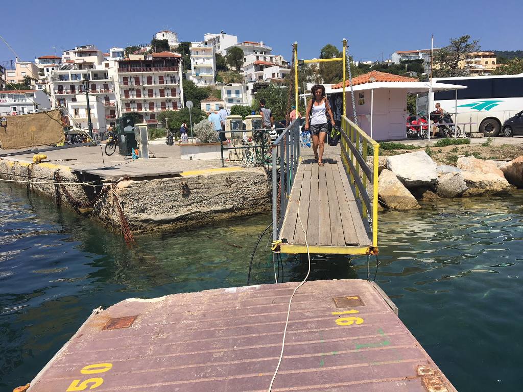 Τα προβλήματα είχαν προκύψει διότι ο υπάρχων πλωτός προβλήτας δεν είχε την προβλεπόμενη εκ του νόμου αδειοδότηση, με αποτέλεσμα ο Λιμενάρχης Σκιάθου να απαγορεύει την πρόσδεση των σκαφών στον προβλήτα, και αντιστοίχως οι τουρίστες – επιβαίνοντες να ταλαιπωρούνται, αναγκασμένοι να επιβιβάζονται και αποβιβάζονται χρησιμοποιώντας τα βοηθητικά βαρκάκια.
