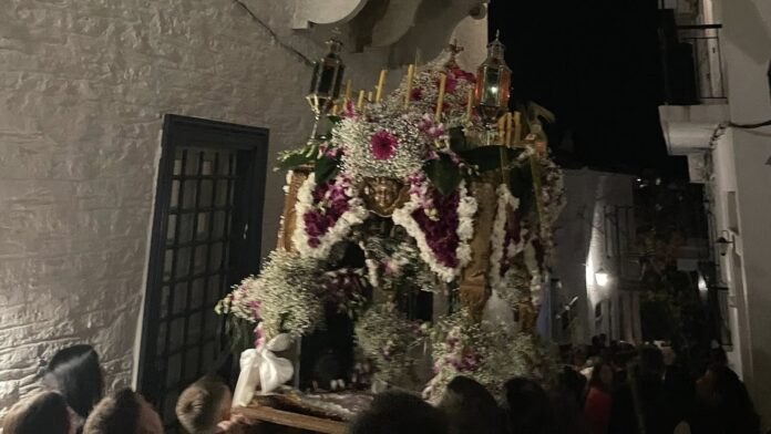 Πλήθος λαού συνόδευσε και φέτος τον επιτάφιο, ενώ πολλοί κάτοικοι βγήκαν από τα σπίτια τους για να τον συναντήσουν.