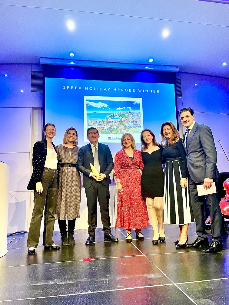 Ιδιαίτερα τιμητική διάκριση απέσπασε ο Δήμος Σκιάθου στα Greek Travel Awards, αφού βραβεύθηκε με το ειδικό βραβείο ως Greek Holiday Hero για την αντιμετώπιση της θεομηνίας του Σεπτεμβρίου και την φιλοξενία που παρείχε στους επισκέπτες της σε αυτήν τη δύσκολη στιγμή. Τα Greek Travel Awards είναι ένας θεσμός που διοργανώνει το Γραφείο του ΕΟΤ στο Ηνωμένο Βασίλειο & την Ιρλανδία, στο πλαίσιο της Διεθνούς Έκθεσης Τουρισμού World Travel Market και επιβραβεύει συνολικά 10 ελληνικούς προορισμούς, ως κορυφαίους ανά κατηγορία. Η Σκιάθος φέτος δεν ήταν υποψήφια στις 10 κατηγορίες των βραβείων, της αποδόθηκε ωστόσο τιμητικά το βραβείο Greek Holiday Hero.