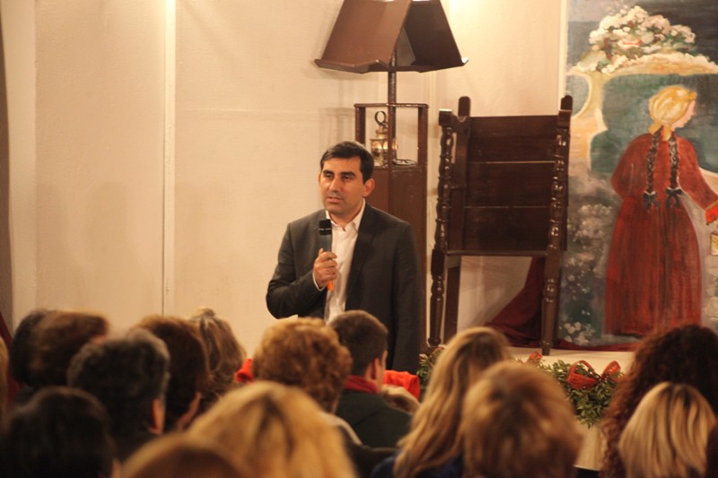 Ο Δήμαρχος στον χαιρετισμό που απηύθυνε μεταξύ άλλων τόνισε : «Στόχος μας είναι κάποια στιγμή να φτάσουμε να έχουμε κόσμο που να ταξιδεύει στην Σκιάθο για να γνωρίσει τα Χριστούγεννα του Παπαδιαμάντη ».