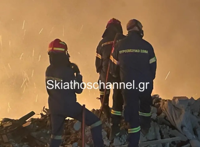 Στο σημείο έσπευσαν πυροσβεστικά οχήματα και πυροσβέστες, επιχειρώντας για κατάσβεση της πυρκαγιάς, σύμφωνα με το skiathoschannel.gr.