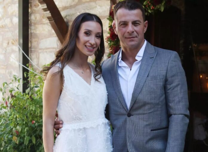 Λίγο πριν το μυστήριο, ο Γιώργος Αγγελόπουλος και η Δήμητρα Βαμβακούση πόζαραν αγκαλιασμένοι στον φωτογραφικό φακό του πρακτορείου NDP έξω από την εκκλησία.