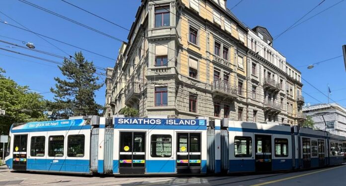 Ο Δήμος Σκιάθου συνεχίζει την υλοποίηση του σχεδίου τουριστικής στρατηγικής προβολής σε διεθνείς αγορές, με μία ακόμη στοχευμένη δράση εξωστρέφειας. Από τις 3 Ιουνίου έως τις 2 Σεπτεμβρίου 2025, ένα τραμ που διασχίζει καθημερινά το κέντρο της Ζυρίχης φέρει εξωτερικό διαφημιστικό banner με θέμα τη Σκιάθο, προσκαλώντας τους κατοίκους και επισκέπτες της πόλης να γνωρίσουν τις ομορφιές του νησιού.