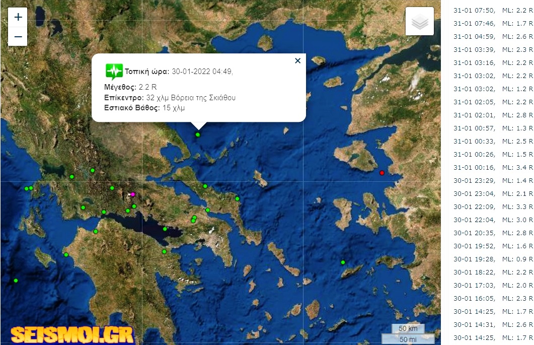 Ο σεισμός είχε επίκεντρο 32 χλμ. Βόρεια της Σκιάθου και σημειώθηκε σε εστιακό βάθος 15 χλμ.