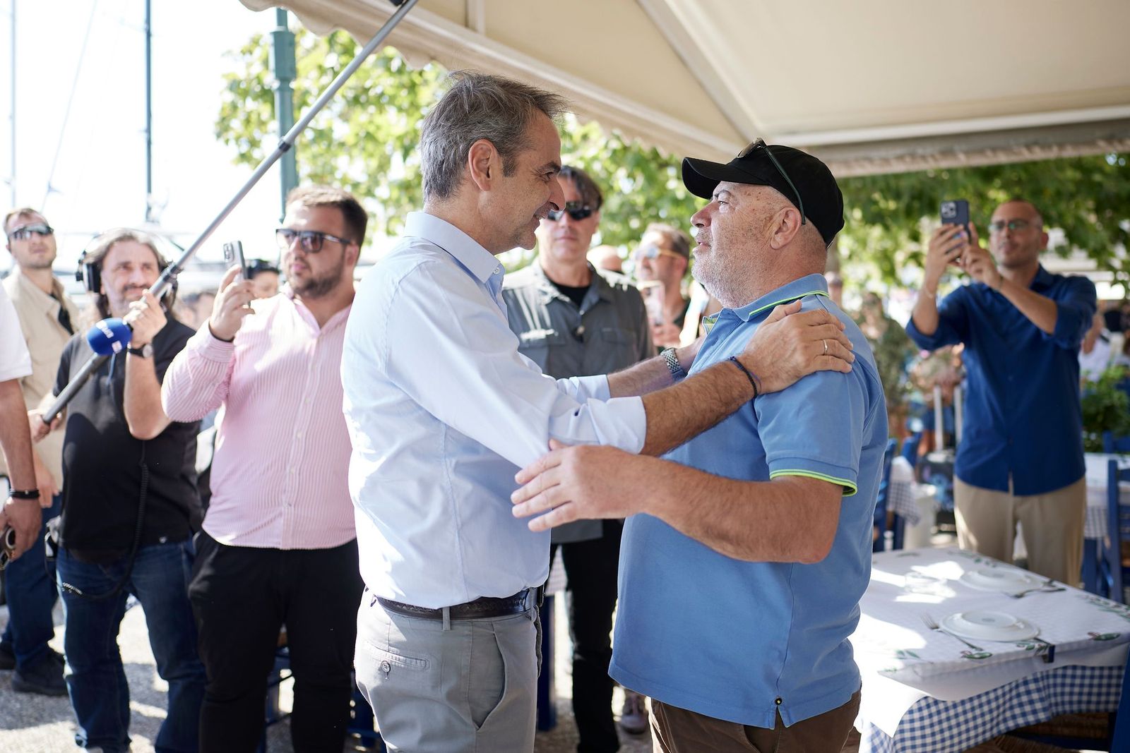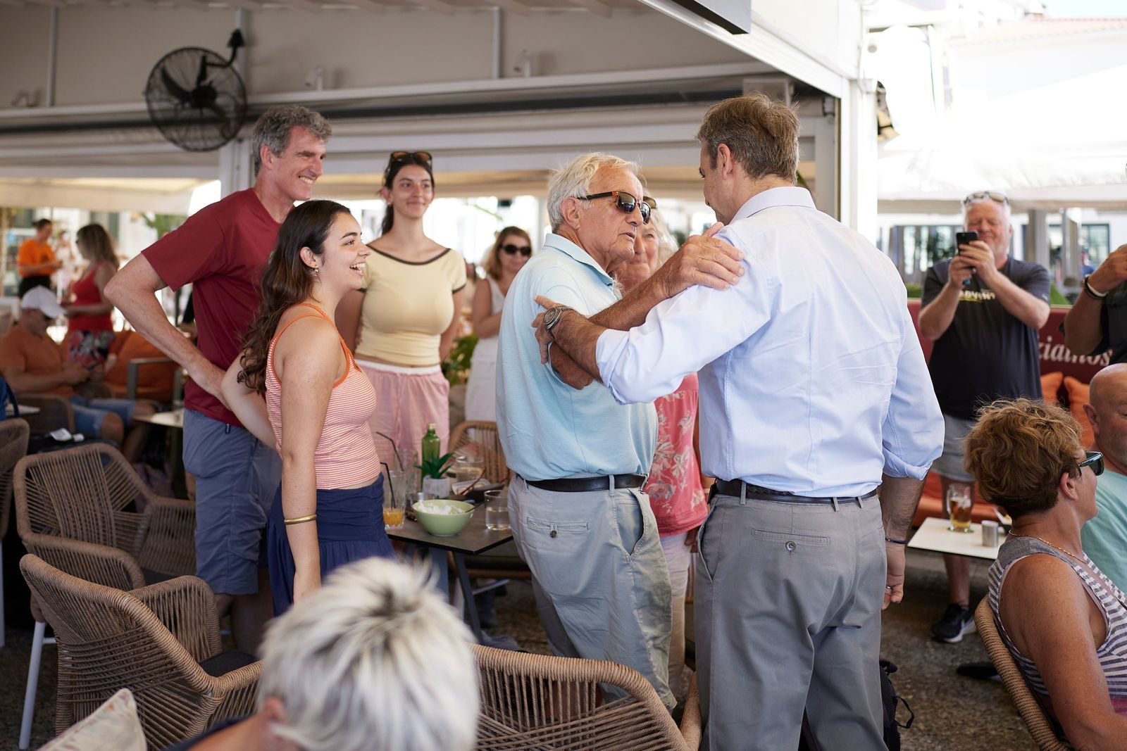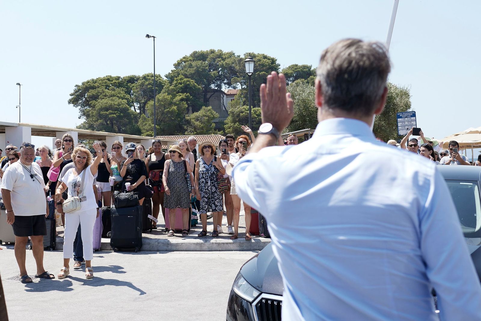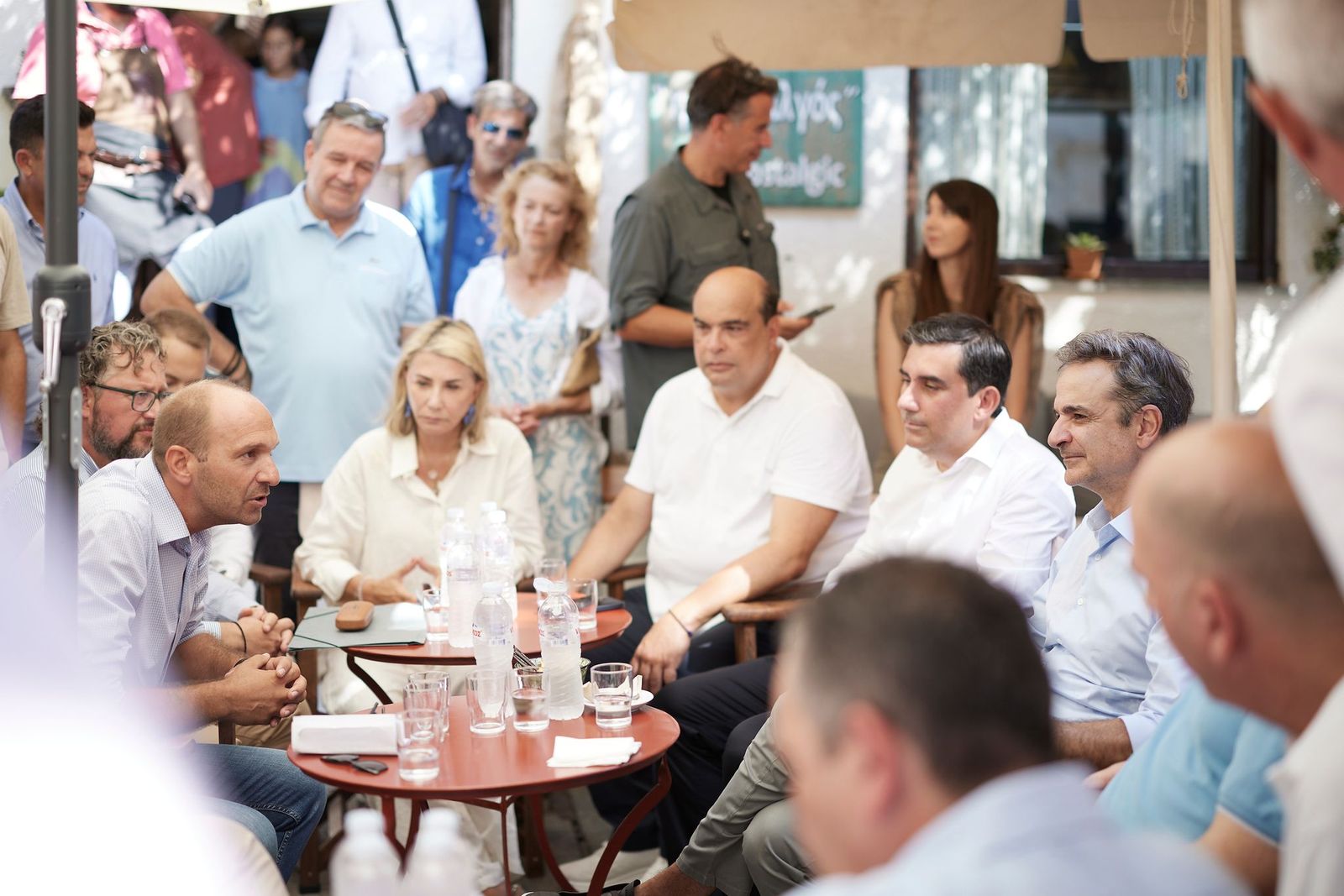 Στο πλαίσιο της επίσκεψής του στη Σκιάθο, ο Πρωθυπουργός έχει την ευκαιρία να συνομιλήσει με καταστηματάρχες, κατοίκους και επισκέπτες που βρίσκονταν στο λιμάνι.