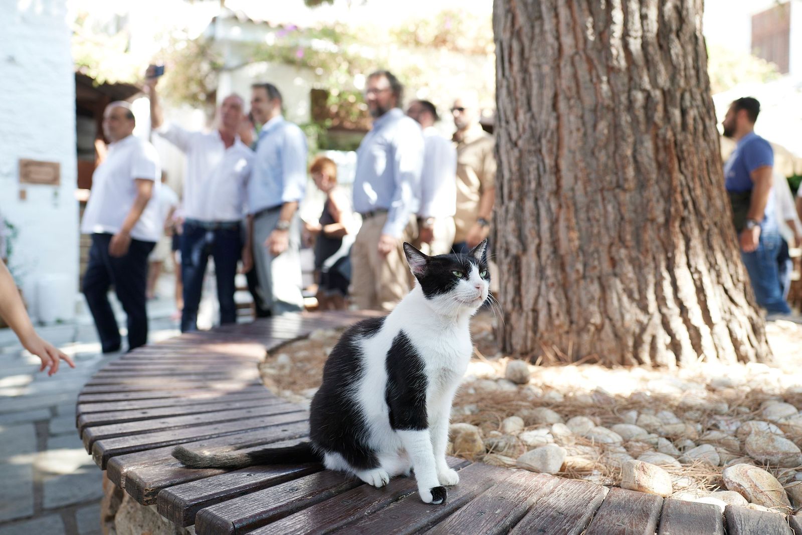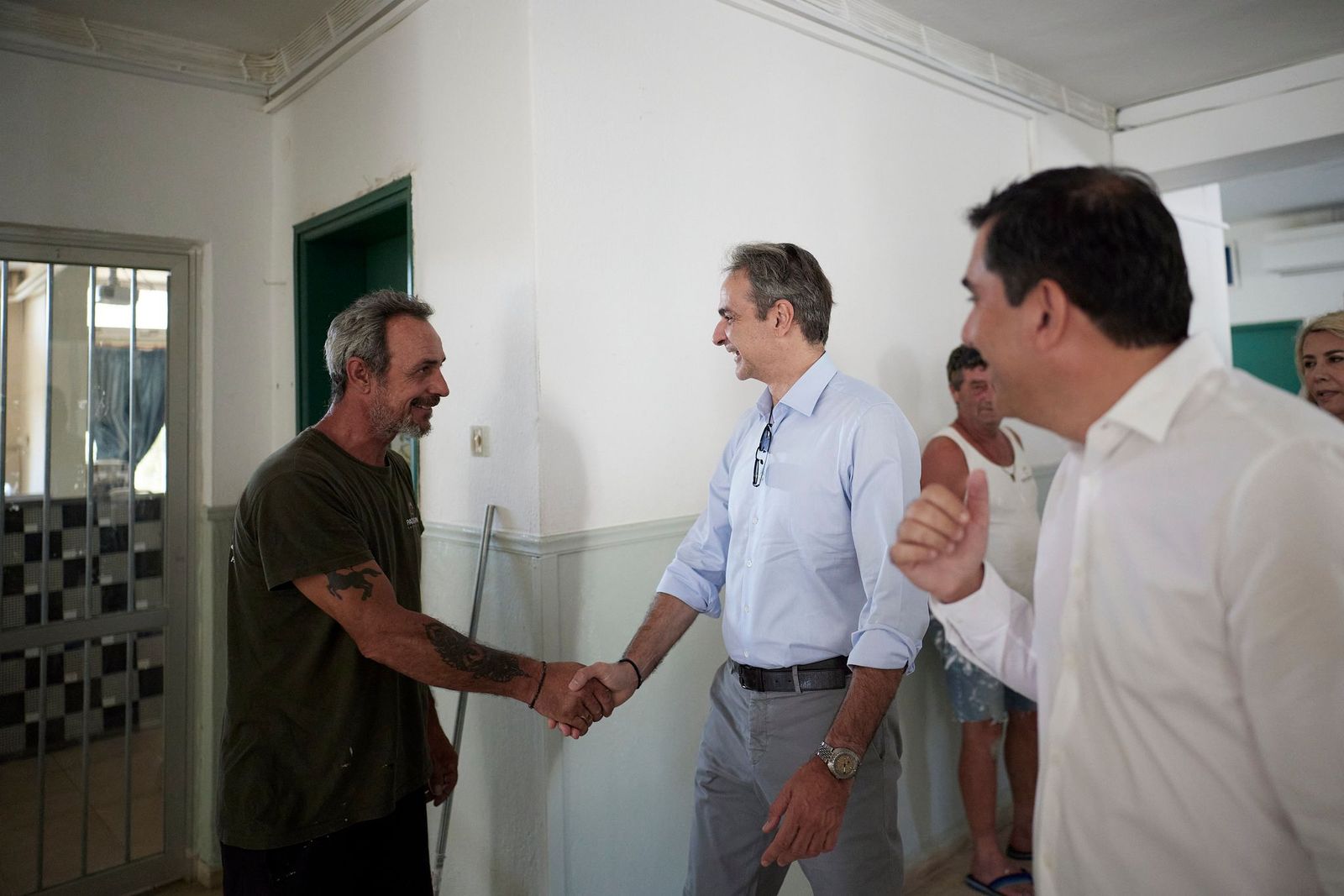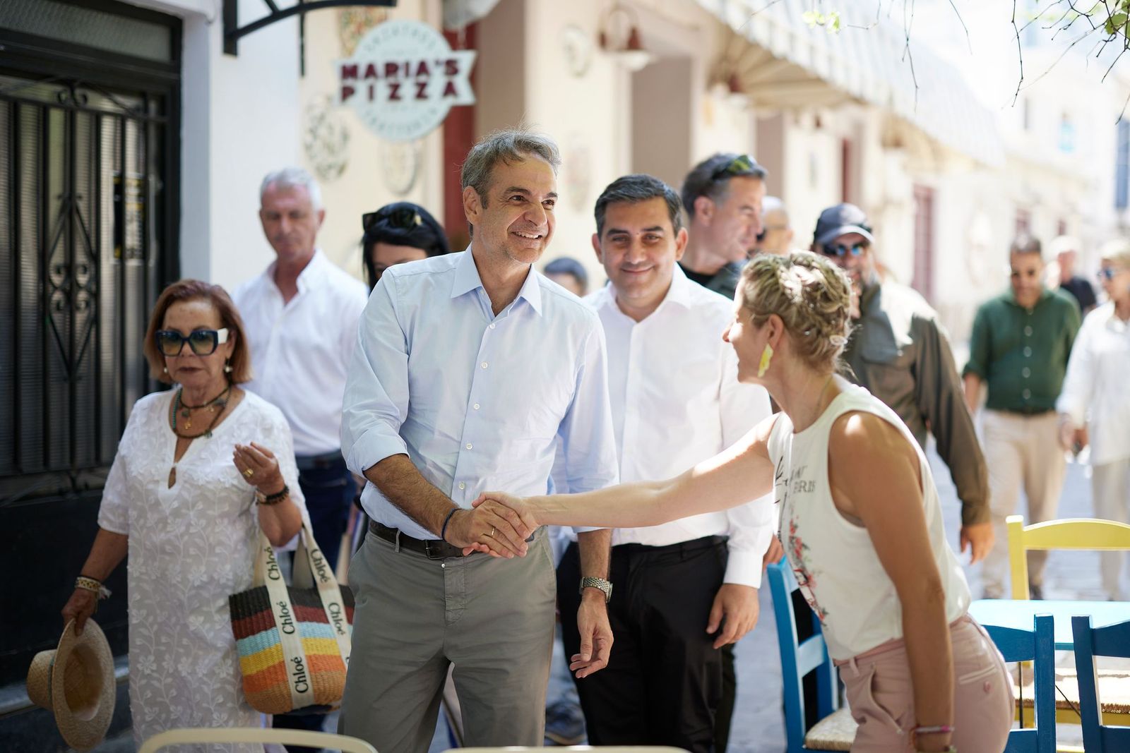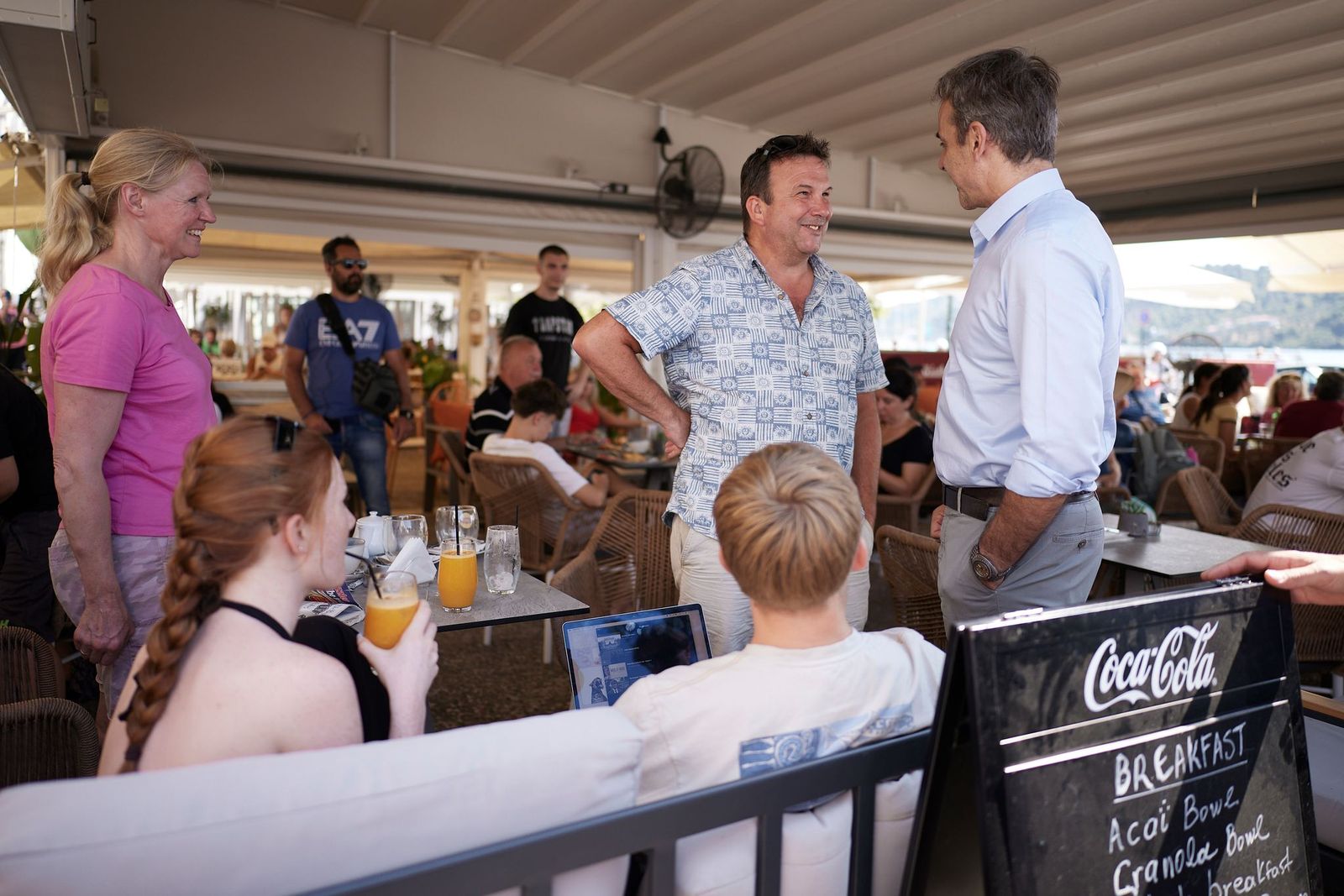Στο πλαίσιο της επίσκεψής του στη Σκιάθο, ο Πρωθυπουργός έχει την ευκαιρία να συνομιλήσει με καταστηματάρχες, κατοίκους και επισκέπτες που βρίσκονταν στο λιμάνι.