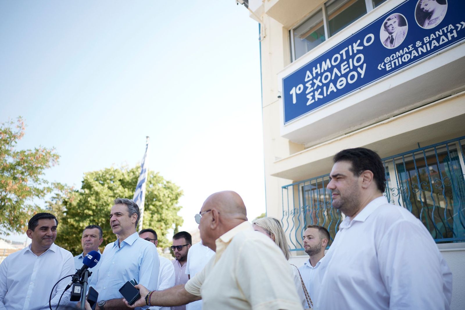 Νωρίτερα, ο Πρωθυπουργός επισκέφθηκε το 1ο Δημοτικό Σχολείο Σκιάθου, ένα ακόμη από τα 430 σχολεία της χώρας που ανακαινίζονται, εντός του καλοκαιριού, μέσω του προγράμματος «Μαριέττα Γιαννάκου».