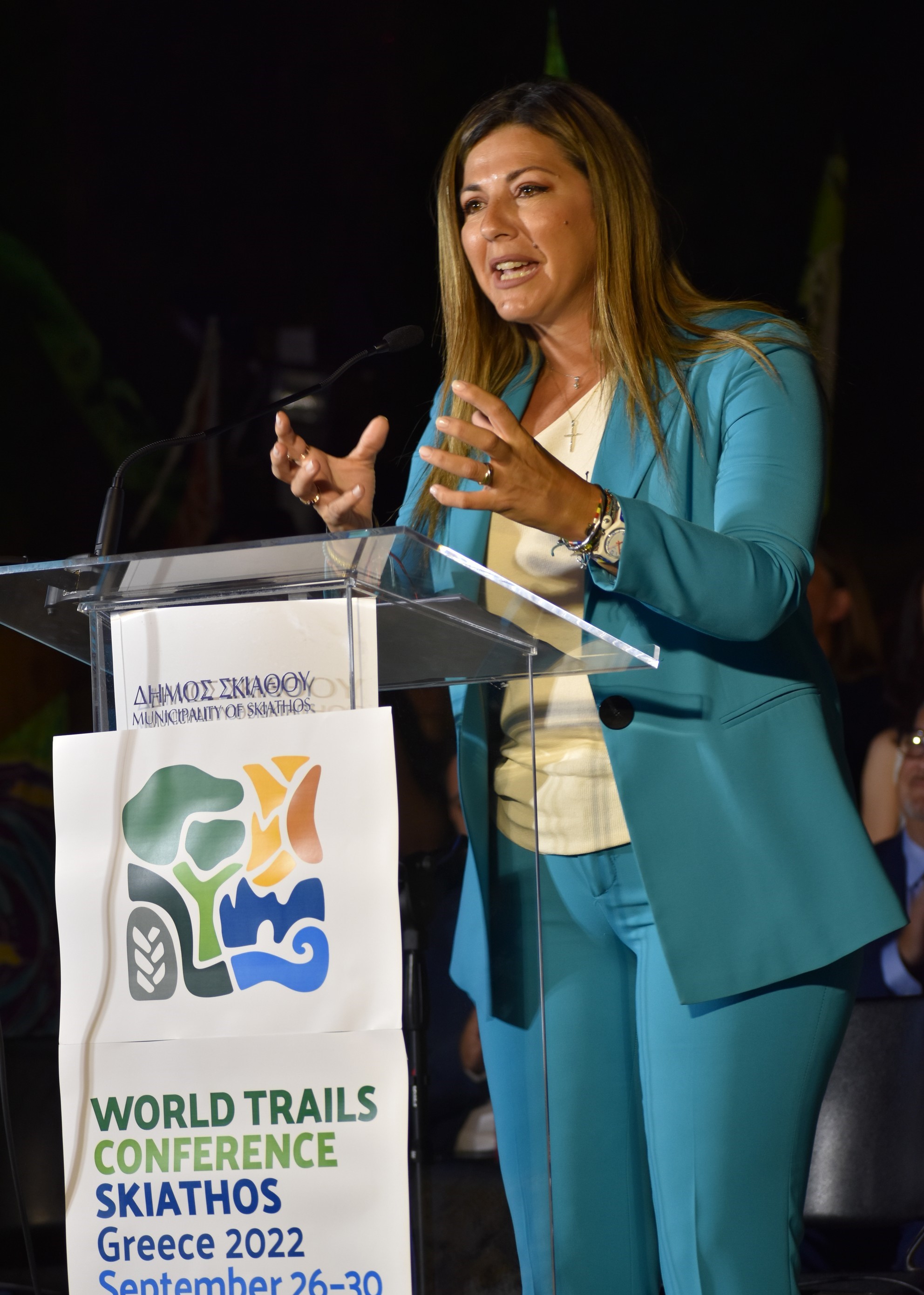 Την δεύτερη μέρα του Συνεδρίου, 27 Σεπτεμβρίου, Παγκόσμια Μέρα Τουρισμού η Alessandra Priante Regional Director for Europe του Παγκόσμιου Οργανισμού Τουρισμού, απηύθυνε βιντεοσκοπημένο χαιρετισμό “Ευχαριστώ το Δήμαρχο και το WTN που μου επιτρέπει να σας απευθυνθώ στο άνοιγμα αυτό του πολύ σημαντικού Συνεδρίου.Ο ΠΟΤ και ο Δήμος έχουν ενώσει τις δυνάμεις τους, συνεργάζονται στενότατα για να βελτιώσουν και να φτάσουν στο επίπεδο που ξέρουμε ότι μπορεί να φτάσει η βιώσιμη ανάπτυξη του τουριστικού προϊόντος της Σκιάθου. Έχουμε κοινές αξίες, προτεραιότητας και μακροπρόθεσμους στόχους. Έχουμε επίσης κοινό αίσθημα ευθύνης. Θέλω να συγχαρώ το Δήμο για την αφοσίωση που επιδεικνύει και τη δέσμευσή του να κάνει τον τουρισμό κινητήρια δύναμη με θετικό πρόσιμο για όλους. Το 8ο Παγκόσμιο Συνέδριο Μονοπατιών έρχεται σε μία μοναδική στιγμή κατά την οποία ο τουρισμός αναπτύσσεται ξανά, άνθρωποι από όλον τον κόσμο ανυπομονούν να ταξιδέψουν για να ανακαλύψουν νέους πολιτισμούς που αναπτύσσονται σε κάθε γωνία και κυρίως τα τοπικά στοιχεία των πολιτισμών αυτών (γαστρονομία, οίνο). Ο τουρισμός είναι πλέον σημαντικότερος από ποτέ καθώς δίνει σε όλους μας την ευκαιρία να μεταμορφώσουμε κοινωνίες με βιώσιμο τρόπο, καινοτομώντας και προστατεύοντας την τοπική κουλτούρα, το περιβάλλον και τις αξίες. Είμαι βέβαιη ότι αυτό το Συνέδριο θα δώσει έμφαση στη σημασία του εναλλακτικού τουρισμού και της φύσης. Θα εξερευνήσει τη δυνατότητα που έχουμε όλοι να προστατεύσουμε και να αναδείξουμε την κληρονομιά μας. “