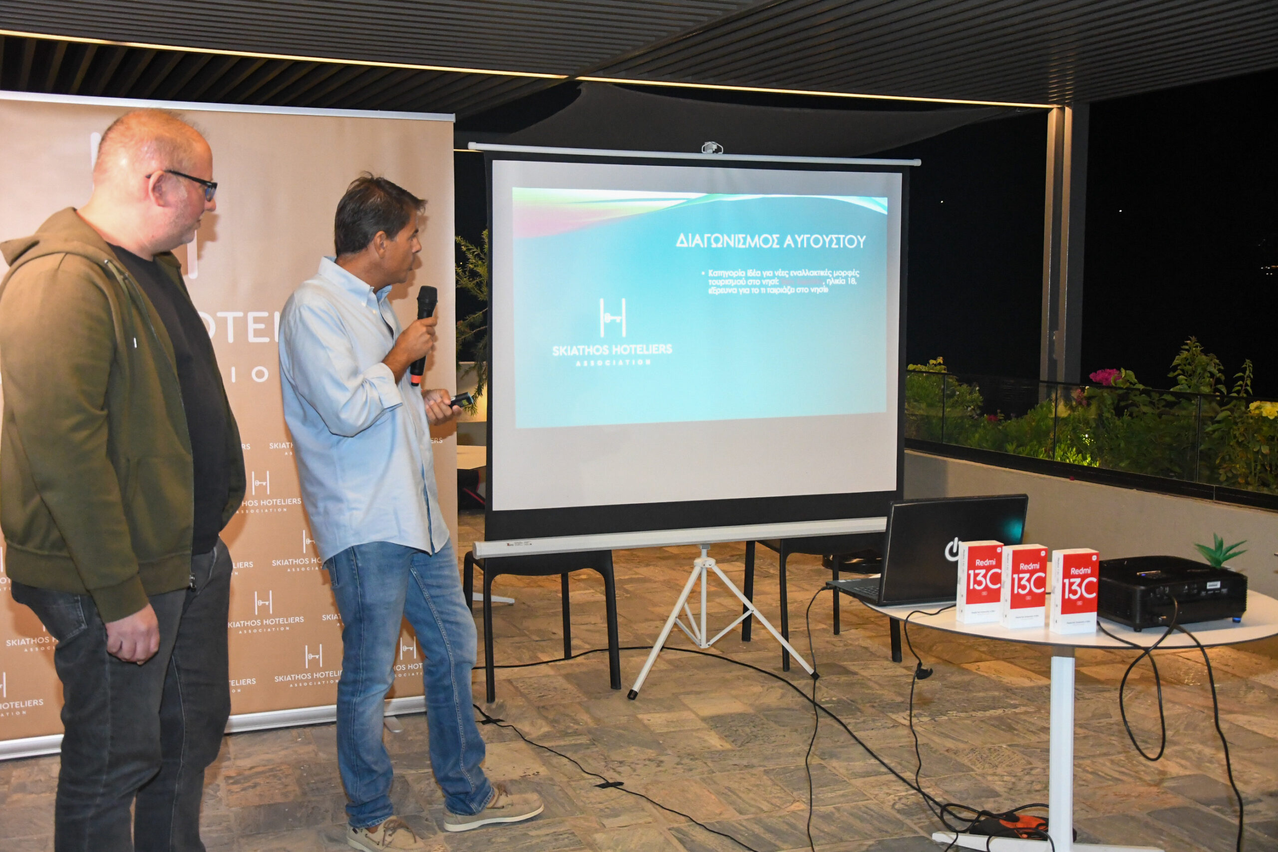 Στα πλαίσια της κλειστής γιορτής της Ένωσης Ξενοδόχων Σκιάθου για τον εορτασμό της επιτυχούς ολοκλήρωσης της σεζόν 2024 την Τετάρτη 2/10, πραγματοποιήθηκαν οι βραβεύσεις των νέων που κέρδισαν στον διαγωνισμό της. Ο διαγωνισμός ολοκληρώθηκε 31/8 και απευθυνόταν σε νέους 16-25 ετών, αποκλειστικά Σκιαθίτες με στόχο την ανάδειξη και προώθηση του νησιού.