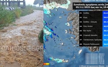 Στη Σκιάθο το μεγαλύτερο ύψος βροχής- Δρόμοι έγιναν ποτάμια (φωτογραφίες)
