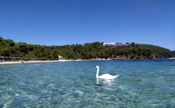 Σκιάθος: Τουριστικό αξιοθέατο δύο κύκνοι που “βόλταραν” στις Κουκουναριές